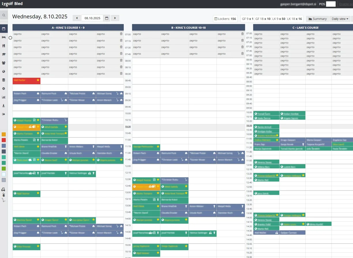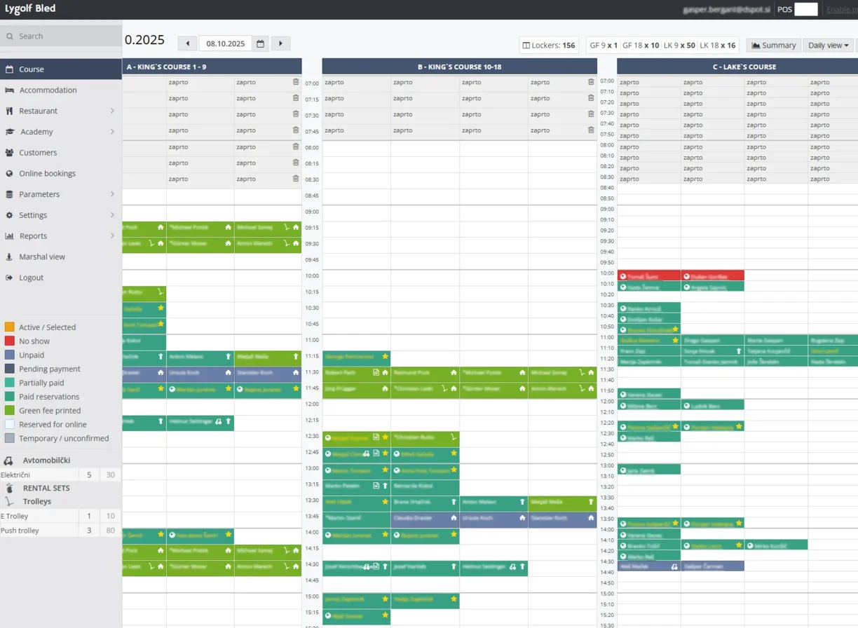 - Course Management – Provides staff with full control over course occupancy, scheduling, maintenance, and tournament operations.